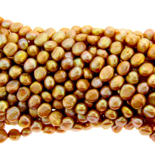 5-6mm Lt Coppery Baroque Nugget Pearl Strand. These freshwater pearl beads have a very nice luster and color depth, some beads may have rings. Sold by the 16 inch pearl bead strand.Made in China. Quality cultured freshwater pearl beads always guaranteed.