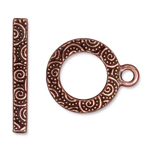 Antique Copper Spiral Clasp Sets Dimensions: Ring: length 19mm, width 16mm; Bar: length 24mm x width 3mm Sold individually.Made in USA.Lead Free.