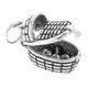 Home Up Back Next Baby in Basket Movable Sterling Silver Charm Sterling Silver Baby in Basket. The lid on the basket swivels open revealing a beautiful baby in the basket. This charm is moveable and three (3) dimensional.< Personalize your designs with Sterling Silver Talking Charms and embellish your with designs with Swarovski Crystal Beads and Pendants Dimensions: 16 x 11 x 9mm Made in the USA