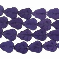 Tanzanite 16x11mm Leaf Glass Beads 12 inch strand. These beautiful glass beads are from limited editions, vintage stock and factory close outs . These beads will most likely not be restocked once sold. Sold by the 12 inch strand, approx. 29 beads.Bead dimensions: 16mm Length, 10mm width, 3mm depth. Hole size: 1.2mm.Made in China