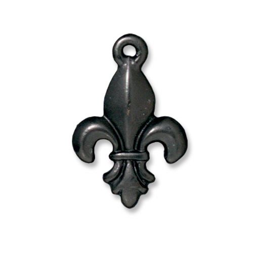 Black Finish Large Fleur de Lis DropSold individually.Material: PewterDimensions: 19.5mm length, 12mm widthMade in USA.Lead Free - Quality Pewter Jewelry Findings