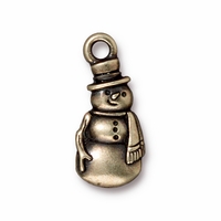 Brass Oxide Frosty the Snowman Charm.Double sided charm.Sold by the individual charm.Charm dimensions: 23mm length, 10mm width. Made in USA. Quality Brass Oxide TierraCast Charms always guaranteed.