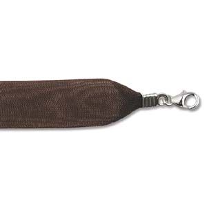 Necklace: Ribbon with Sterling Silver Clasp Color: Brown Dimensions: 17 Inches
