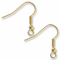 Fishhook earwire with ball Material: Gold plated Dimensions: Length 20mm, 3mm Ball Sold in packs of 5 pairs, or 10 pieces. These french ear wire style earrings are hypoalergenic.