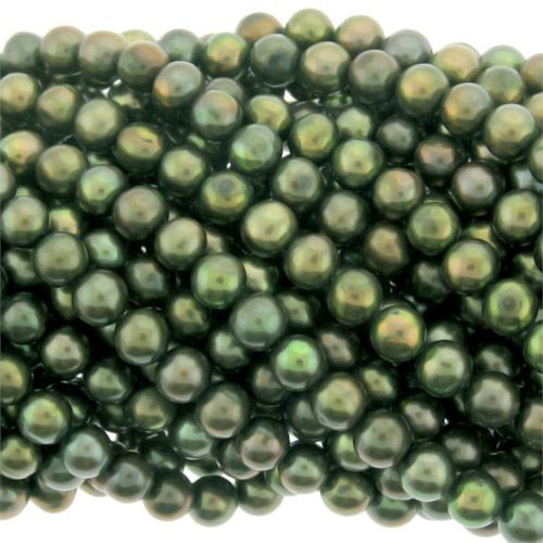 Forest Green Potato Freshwater Pearls 6-7mmVery nice luster, mostly smooth with some rings and ridges.Sold by the 16" Strand.Place of origin: China Quality cultured freshwater pearl strands always guaranteed.
