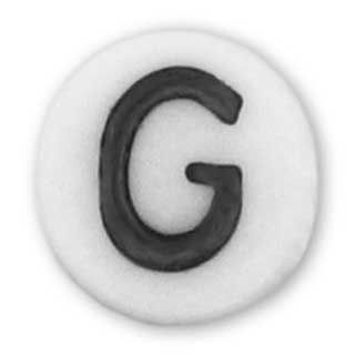 Czech Glass: Round Letter G bead. Dimensions: Diameter = 6mm Sold in packs of 10 beads. White glass alphabet beads with Black inlay.