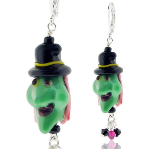 Home Up Back Next Green Witch Lampwork Earrings Design Kit Scroll down to place in shopping cart. GREEN WITCH EARRING JEWELRY DESIGN KIT. The Green Witch Earring design kit will surely cast a spell upon all this Halloween season. The design mixes Swarovski jet and fuchsia bicone crystals with fabulous Green Witch lampwork art beads and silver plated findings. This earring kit is fun and easy to make!Each kit includes: