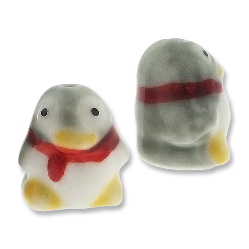 Home Up Back Next Porcelain Cute Penguin 17x16mm Beads (2PK) Porcelain Cute Penguin 17x16mm Bead (2PK). Sold in a package of two beads. Bead dimensions: 17mm length, 216mm width. Made in China.Quality porcelain beads are always guaranteed. Due to the nature of hand painted beads there will be variations that make each bead unique.