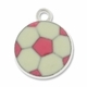 Silver Plated Pink and White Soccer Ball Enameled Charm.Charm is sold individually.Charm dimensions: 22mm length, 18mm width. Made in China.