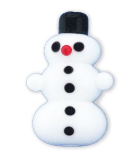 Czech Lampwork Glass: Snowman shape, vertically drilled Color: White with Black hat, eyes and buttons. Red nose. Dimensions: 15mm wide at base, 24mm vertical height Three Dimensional Vertically drilled. Sold individually