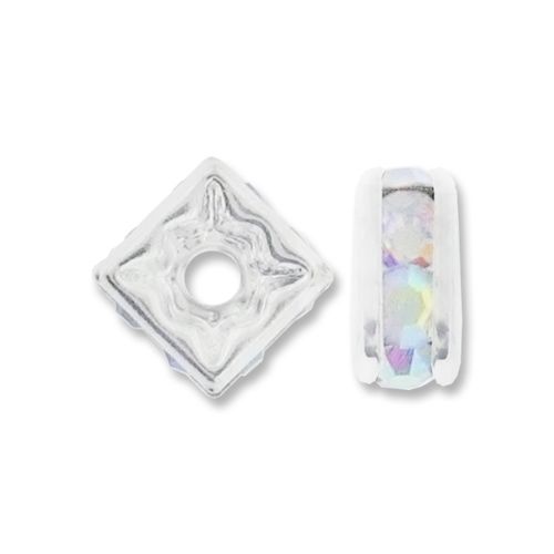 5mm Crystal AB Silver Plated Squaredelle (10PK) Sold in a package of 10 squaredelles.Bead dimendions: 5mm length, 5mm width.Made in China.